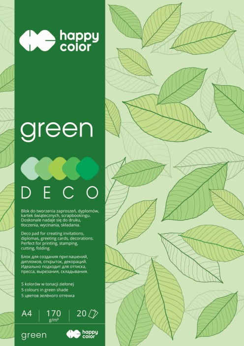 BLOK DECO A4 7842 2030-GR 20K 170G ODCIENIE ZIELONE HAPPY COLOR