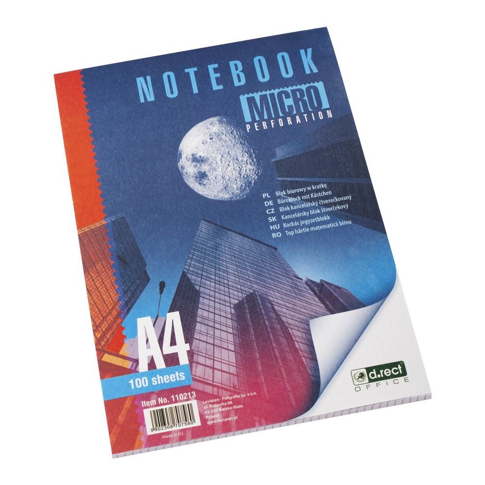 Blok biurowy A4 100 kartek kratka z perforacją 110213 D.RECT