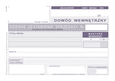 Dzienne zestawienie sprzedaży nieudokumentowanej K15 książka M&P