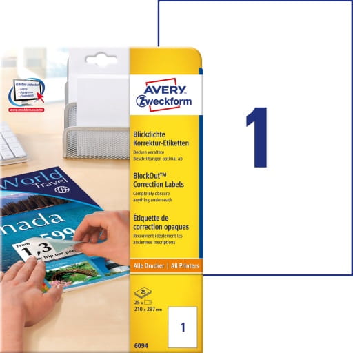 ETYKIETY 210X297 ILK 20 ark. 6094 KRYJACE BIAŁE ZWECKFORM