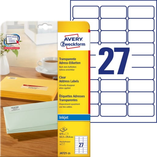 ETYKIETY PRZEZR.63,5X29,6 J4721-25 25 ark. INK ZWECKFORM