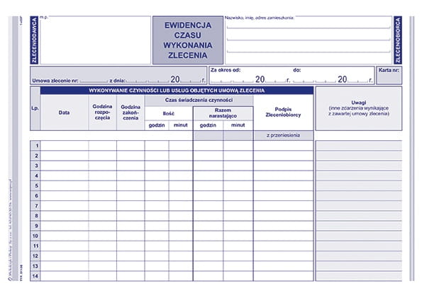 Ewidencja czasu wykonania umowy zlecenia A5 511-3E M&P