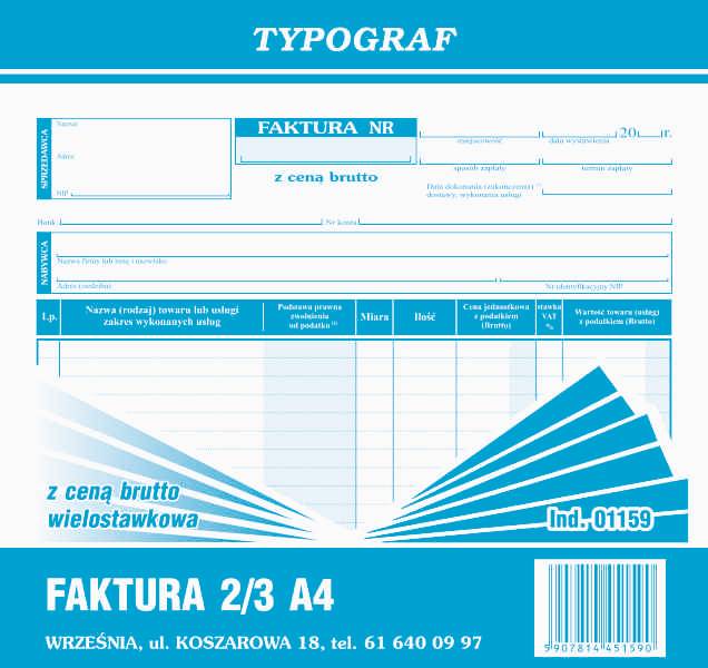 FAKTURA BRUTTO 2/3 A4 01159 WIELOSTAW.TYPOGRAF 80K/S