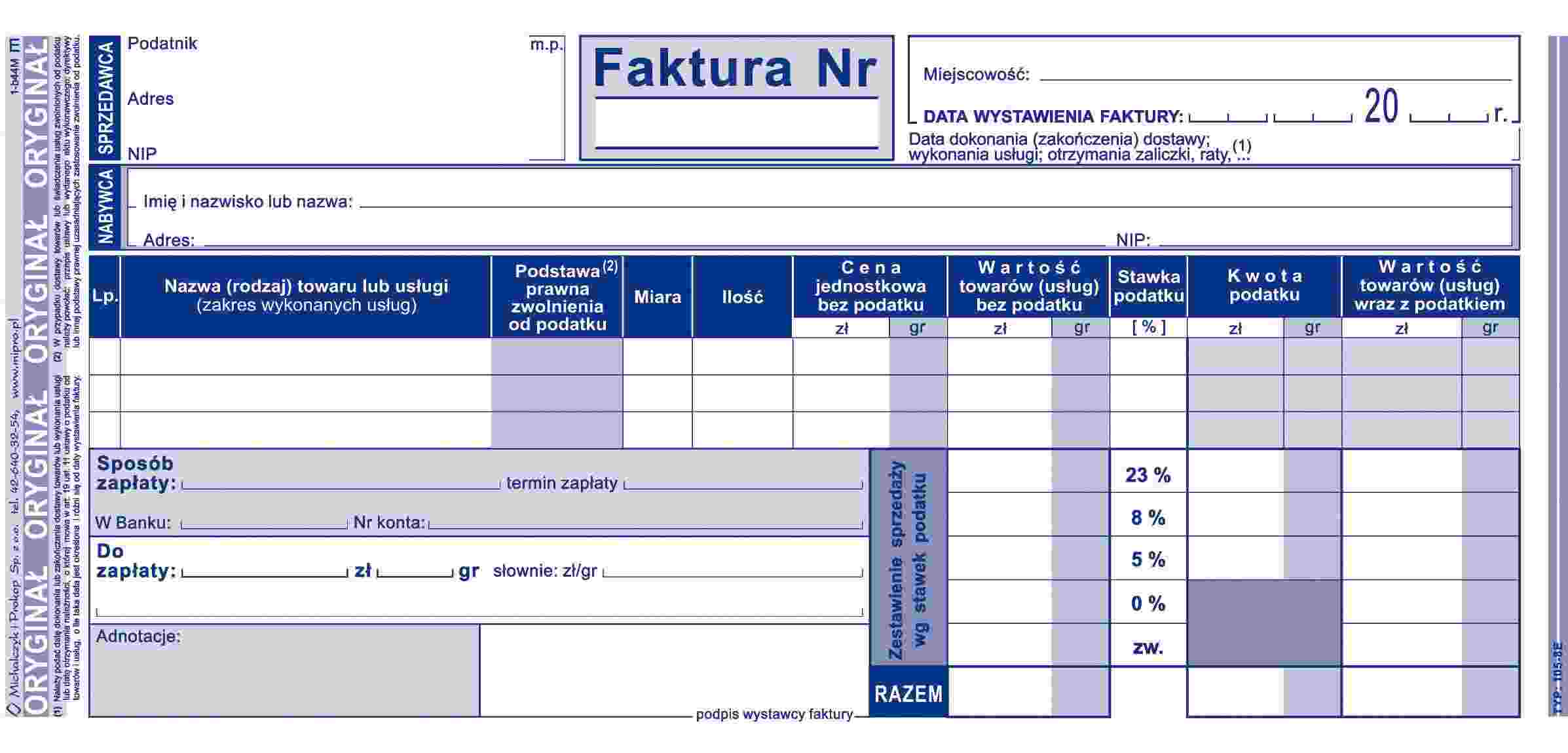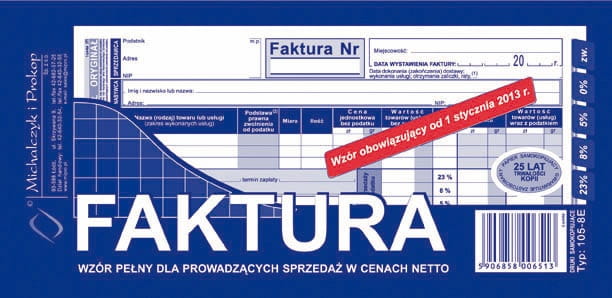 FAKTURA NETTO PEŁNA 1/3 A4 105-8E M&P O+K
