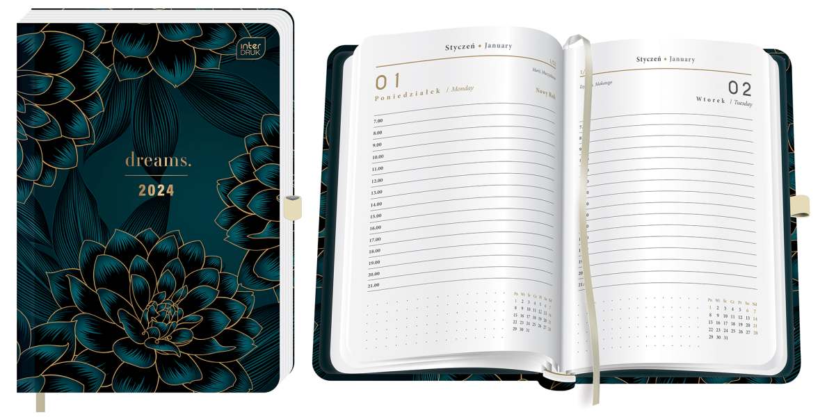 KALENDARZ KSIĄŻKOWY A5 DNS 384 STR. Z GUMKĄ METALLIC DREAMS INTERDRUK