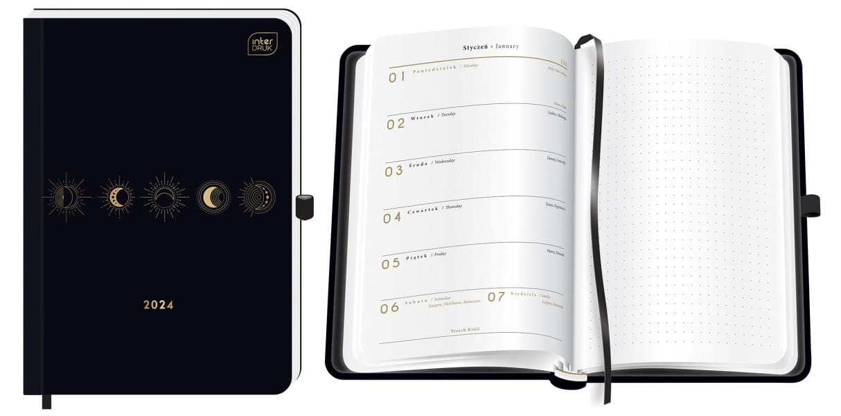 KALENDARZ KSIĄŻKOWY A5 TN1S 192 STR. Z GUMKĄ METALLIC MOON INTERDRUK
