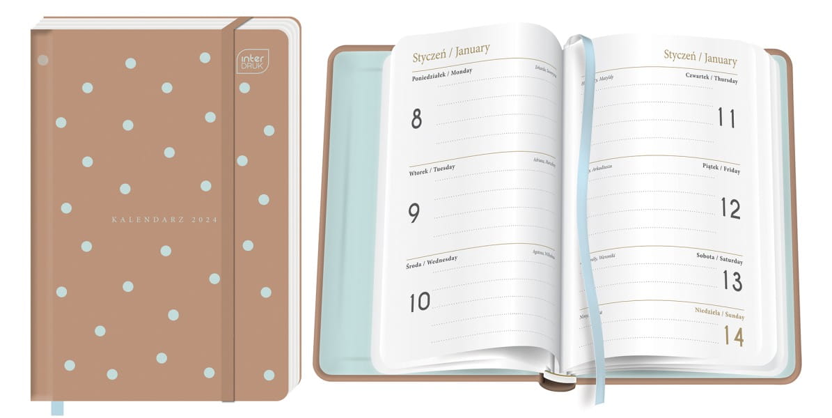 KALENDARZ KSIĄŻKOWY A6 TN2S 192 STR. Z GUMKĄ MAT+UV BLUE DOTS INTERDRUK