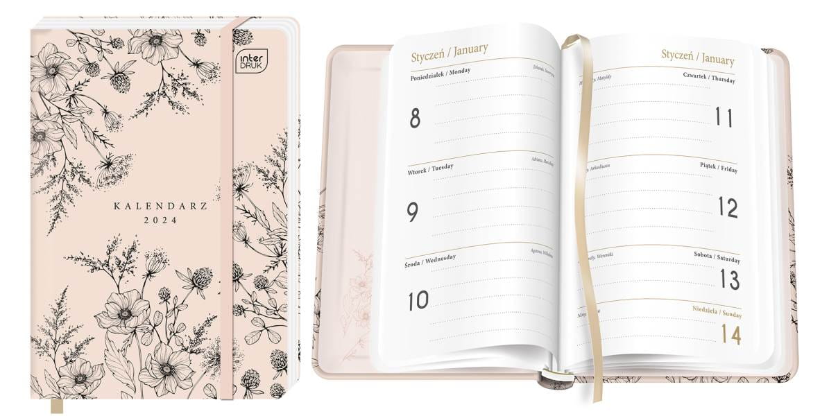 KALENDARZ KSIĄŻKOWY A6 TN2S 192 STR. Z GUMKĄ MAT+UV RETRO INTERDRUK