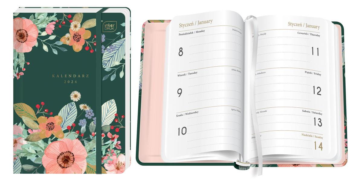 KALENDARZ KSIĄŻKOWY A6 TN2S 192 STR. Z GUMKĄ METALLIC GARDEN INTERDRUK