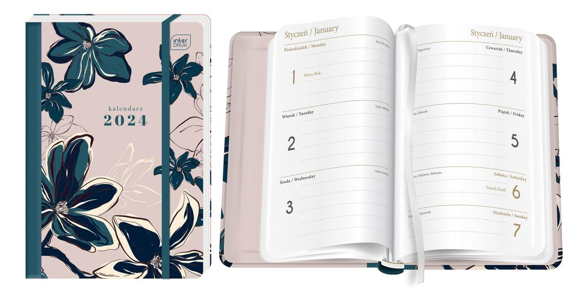 KALENDARZ KSIĄŻKOWY B6 TN2S 192 STR. Z GUMKĄ MAT+UV FLOWERS INTERDRUK