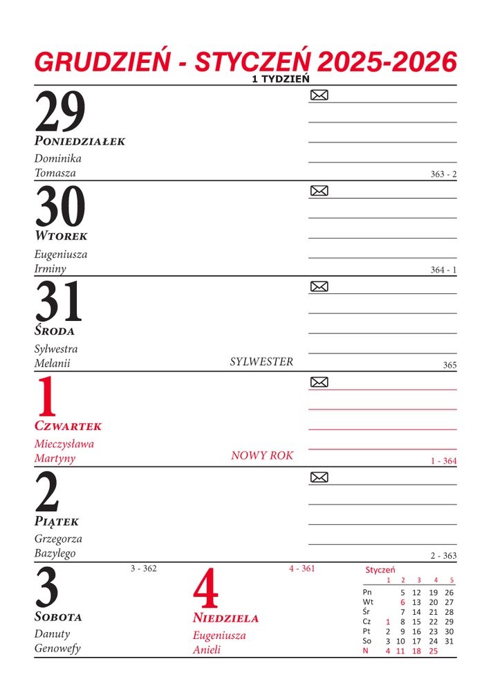 Ilość kalendarzy w paczce / Waga opakowania: 50 szt / 4,49 kg