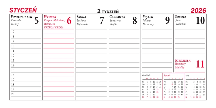 Ilość kalendarzy w paczce / Waga opakowania: 20 szt / 3,2 kg