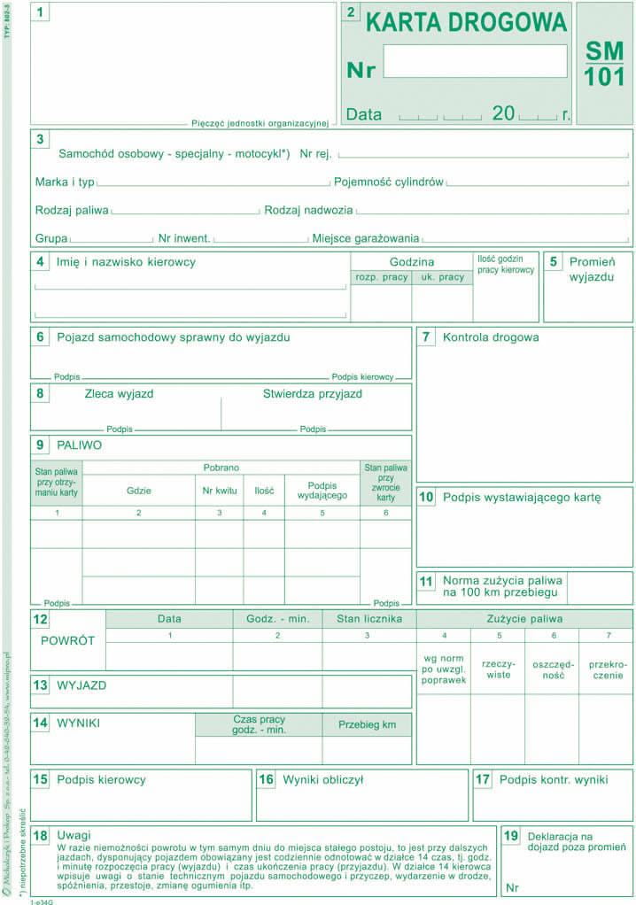 KARTA DROGOWA SAMOCHÓD OSOBOWY A5 802-3 SM-101 M&P