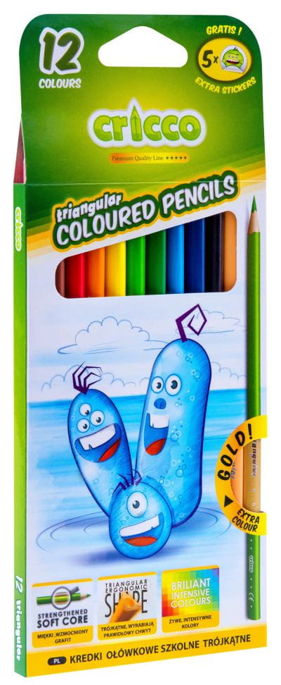 KREDKI OŁÓWKOWE 12 KOLORÓW CRICCO CR322K12 TRÓJKĄTNE