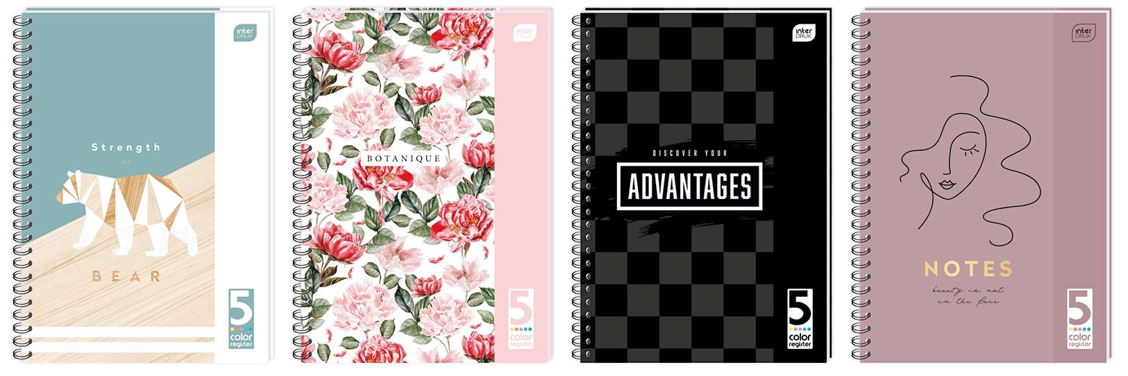 Kołozeszyt B5 100 kartek w kratkę z perforacją M 70G 5 kolorowych registrów INTERDRUK