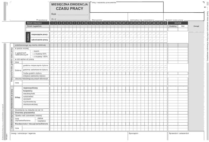 MIESIĘCZNA EWIDENCJA CZASU PRACY 526-1 M&P