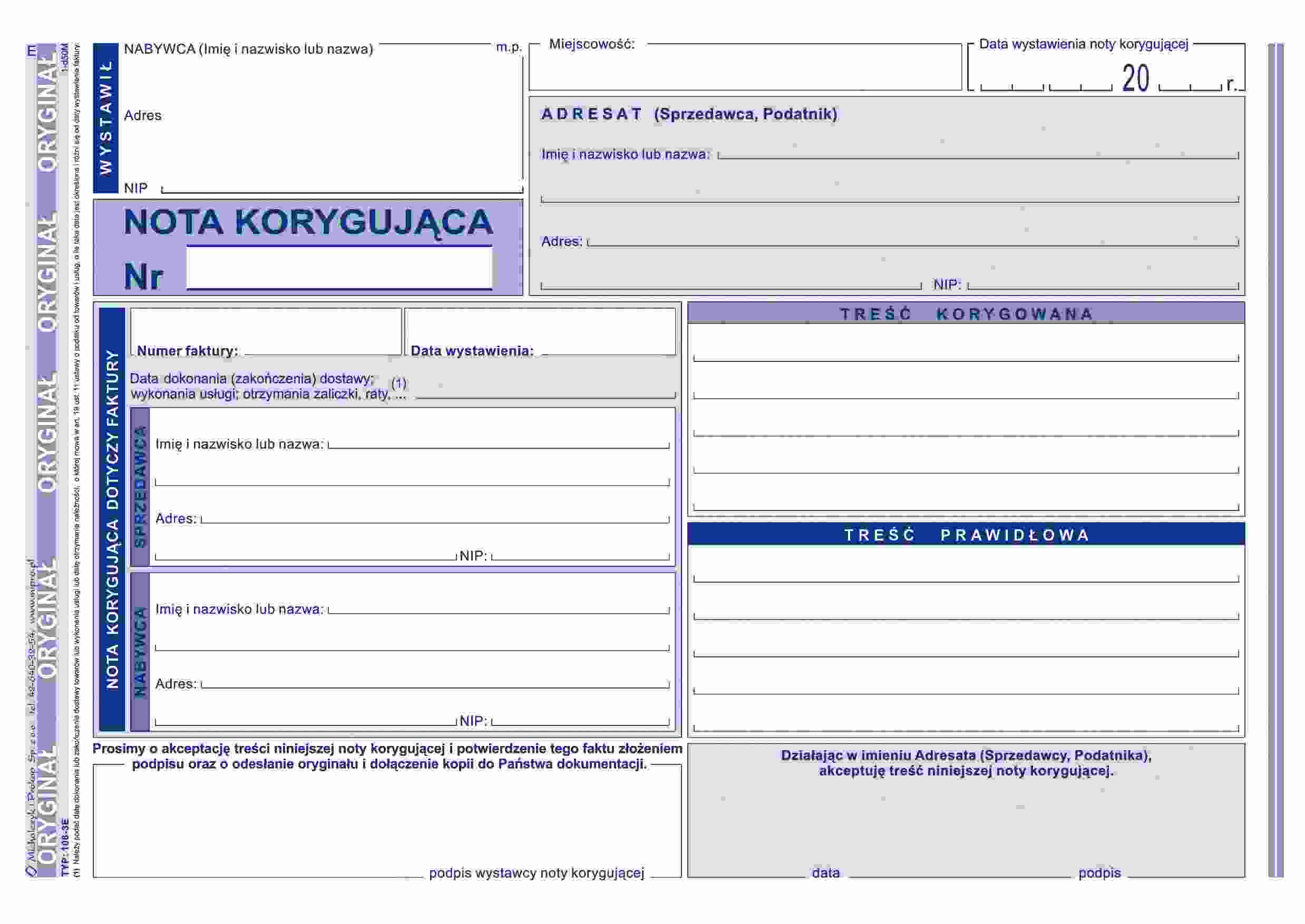 NOTA KORYGUJĄCA A5 VAT 108-3E M&P