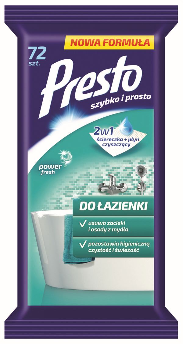 Nawilżane ściereczki do łazienek PRESTO 72szt. białe