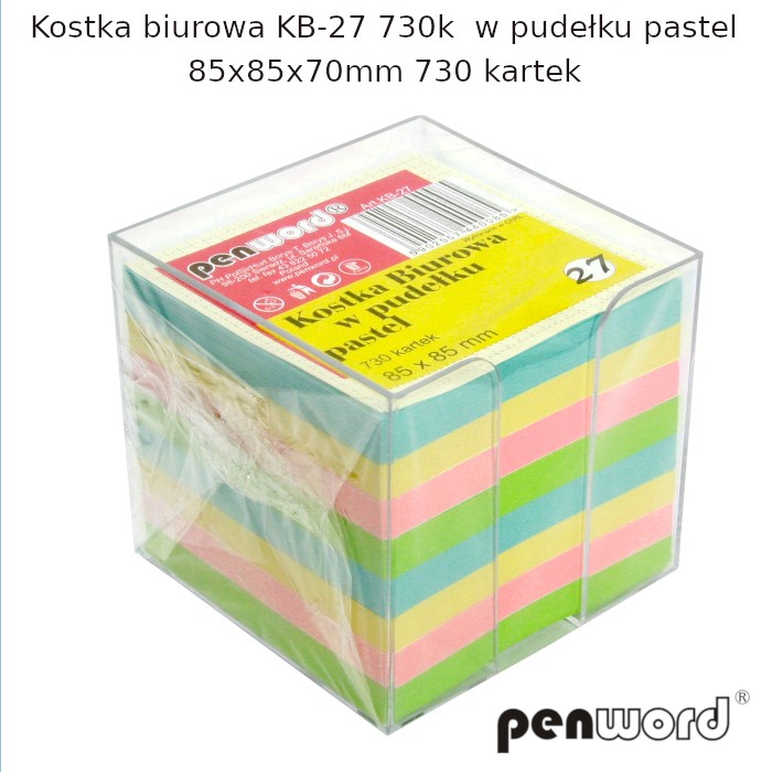 Notes kostka w pojemniku 85x85x70mm 730K pastelowe kolory KB-27 PENWORD