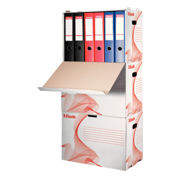 Chcesz znacznie ograniczyć miejsce potrzebne do archiwizacji dokumentów, a jednocześnie utrzymać porządek? Pudło zbiorcze na segregatory Esselte 10964 zostało zaprojektowane z myślą o przechowywaniu do 6 standardowych segregatorów A4 o grubości 75 mm.