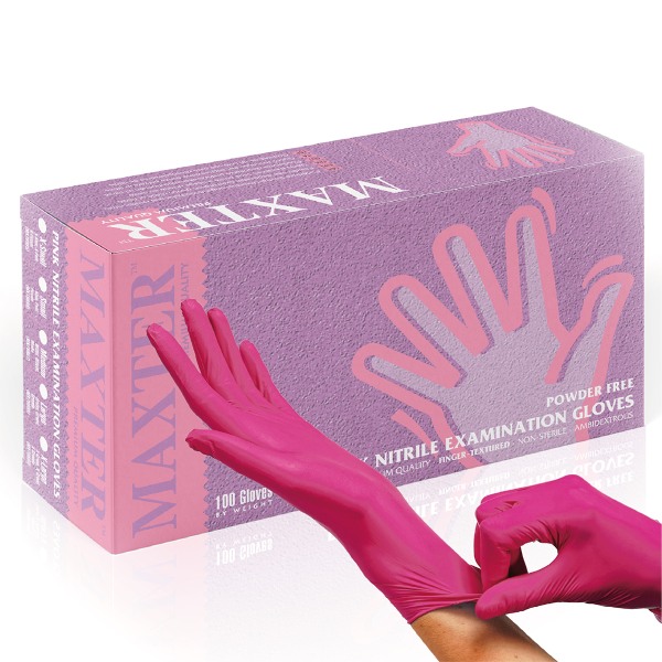 Rękawice nitrylowe bezpudrowe MAXTER 100 szt. rozmiar M różowe HGK-BHRE999951
