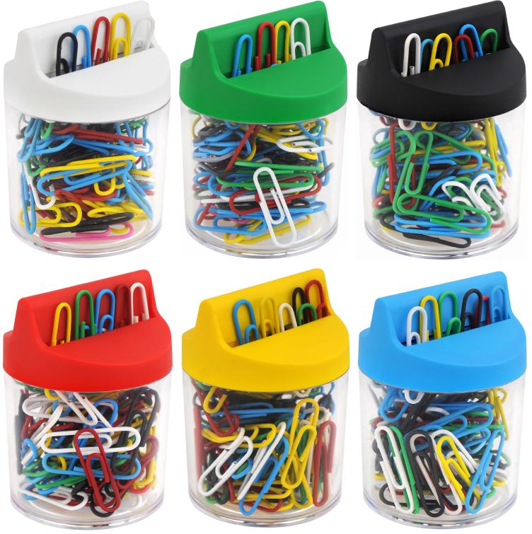 SPINACZE KOLOROWE 28MM 100 szt. POWLEKANE KOLOROWE MS108-100 MEMOBE pojemnik na spinacze magnetyczny