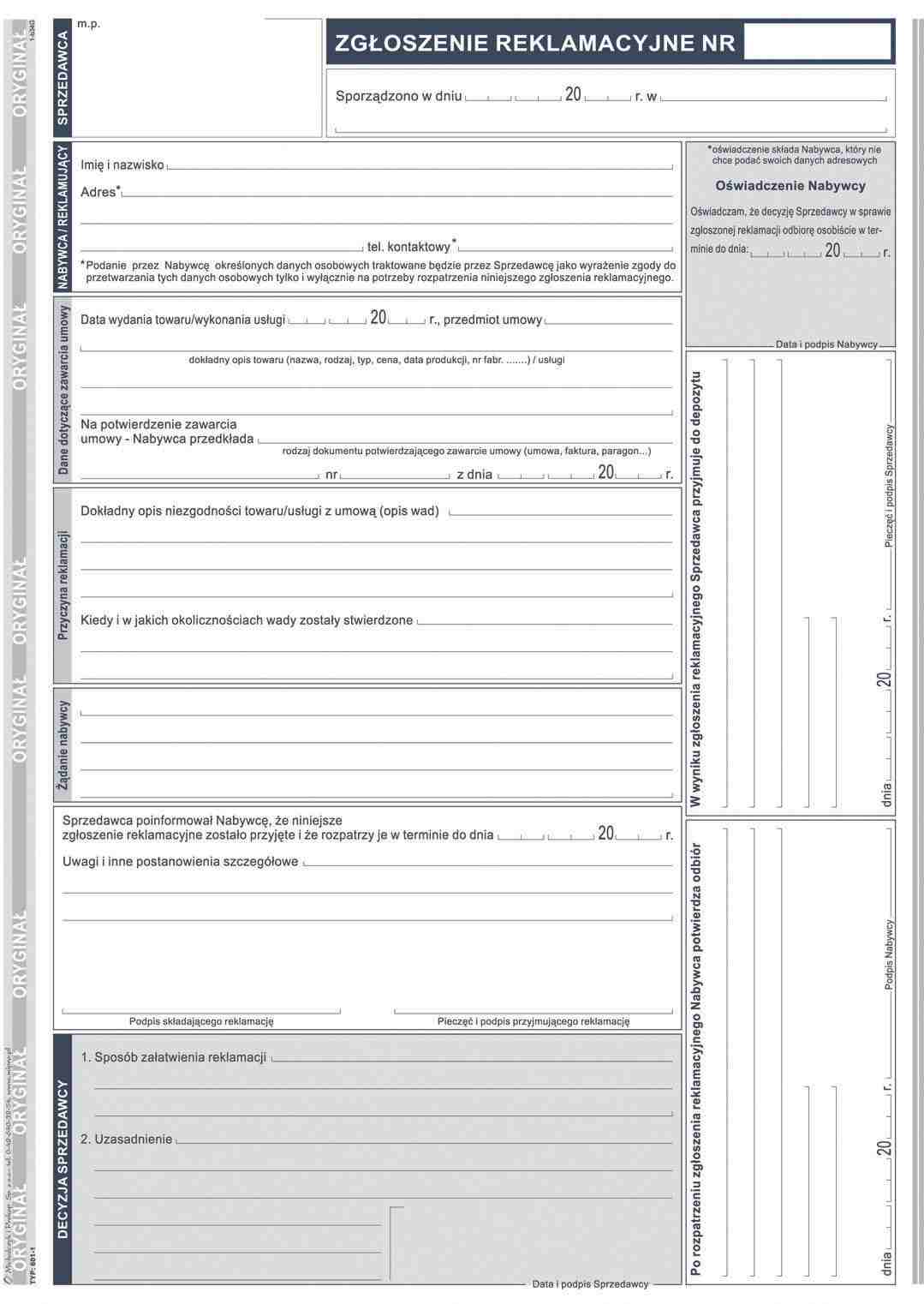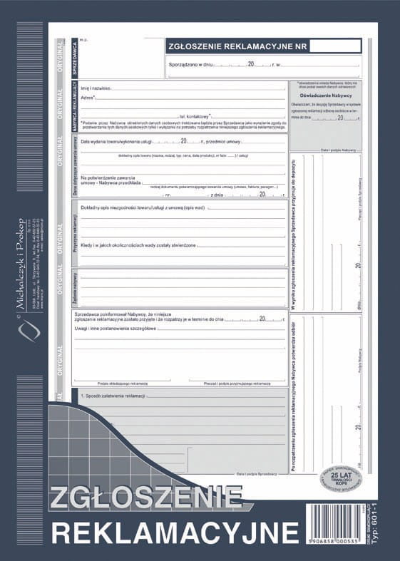 ZGLOSZENIE REKLAMACYJNE (2 KOPIE) 601-1 40K/S M&P