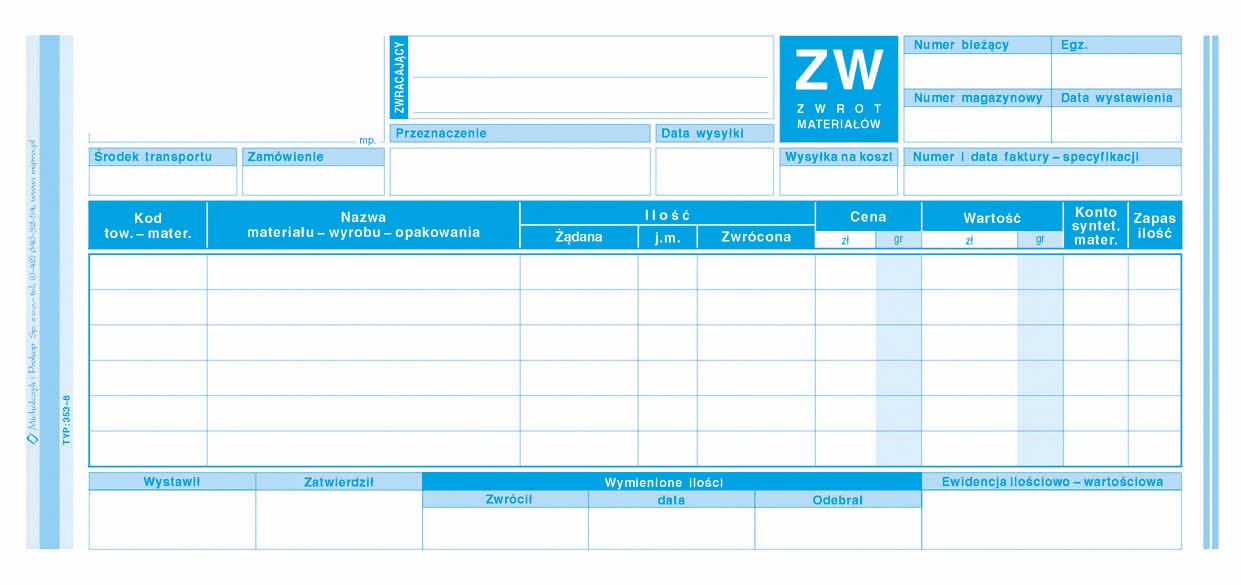 ZW 1/3 A4 ZWROT MATERIALOW 353-8 M&P